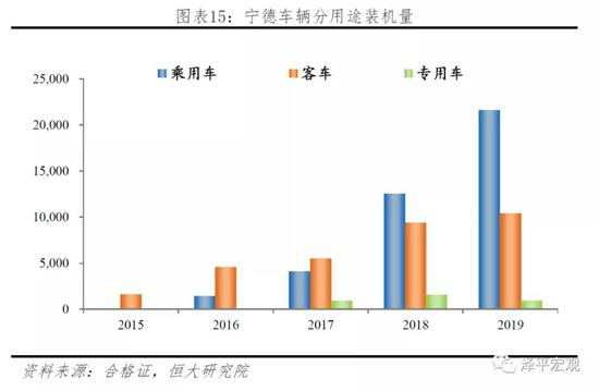 2014-2016年,政策对商用车实行超额补贴,宁德抓住客车市场爆发的机遇。2014-2016年新能源客车国家补贴分别达到104、401、452亿元,占当年补贴总金额70%以上。在补贴政策的大幅倾斜下,客车市场爆发,2015、2016年装机量分别为9GWh和14.9GWh。这一阶段宁德装机量的增长主要来源于客车,装机量分别为1.6GWh和4.6GWh,占公司总装机量比重达到99%和76%。