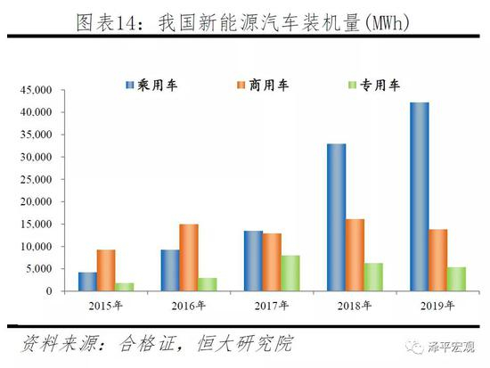 补贴政策为产品升级按下加速键,驱动电池能量密度提高和车型高端化。补贴政策的影响主要体现在产业的规模和结构上,一方面调动了车企生产研发的积极性,驱动行业规模迅速扩张;另外,通过调节不同续航分档补贴金额和退坡节奏引导技术进步。近年市场的技术进步都围绕着补贴政策开展。补贴政策每年调整一次,新能源汽车及电池产品结构每年升级一次,朝着高级别、高续航及高能量密度方向发展。在补贴政策年度调整的影响下,我国新能源汽车市场结构在4年时间内经过了从商用车到乘用车、从低续航低级别向高续航高级别车型切换。同时,动力电池技术路线也经历了“铁锂-低端三元-高端三元”的转换。