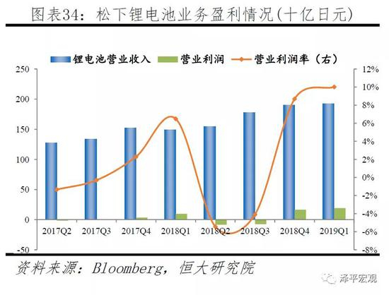 松下锂离子电池业务属于汽车电子(AIS)业务中的能源业务分项,而能源业务又包括二次电池与能源设备两部分,二次电池包括松下二次电池事业部与特斯拉事业单元。2018年松下二次电池收入占总比重5.29%,且始终挣扎在盈亏平衡线。