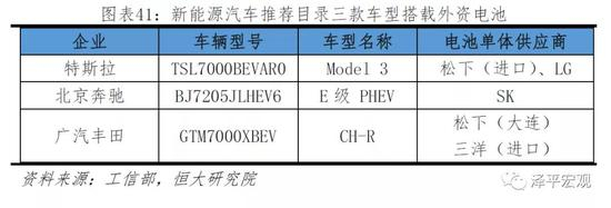 另外,工信部2019年第11批新能源汽车推荐目录中,有3款车型搭载了外资动力电池,分别是特斯拉Model 3搭载松下和LG化学的电池、奔驰E级新能源搭载SK电池、丰田CH-R EV搭载了松下电池。