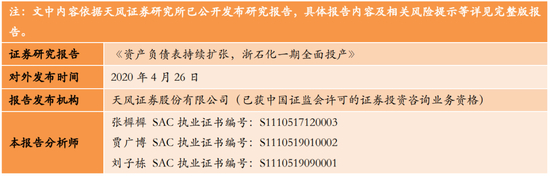 观点:券商股再次进入政策利好期叠加流动性改善期,我们坚定看好公司在股权融资大时代中的业务布局。基于公司1季度计提减值规模增加,我们将2020-2021年盈利由原来的150/175亿元下调至147和169亿元对应PB为1.65和1.57倍,维持“买入”评级。