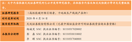 公司实际控制人杨永岗、温月芳是国内碳纤维行业领军人物,公司属于双科学家领衔的科技创新型公司。截止2019年12月,公司共有授权专利20项,其中,发明专利8项,实用新型专利12项。公司较强的研发实力有助于公司在高技术壁垒行业中保持技术优势,为公司业绩稳定增长提供强劲的动力。