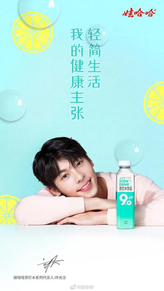 娃哈哈近年来的品牌动作挺多的。今年初,娃哈哈成了LPL的官方合作伙伴,联手钟薛高推出AD钙奶味的“未成年雪糕”,还和泡泡玛特合作推出了“盲水”,今年夏天,娃哈哈还推出了新包装的pH9.0苏打水,瓶身上的代言人是新晋人气偶像许光汉。