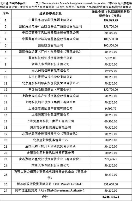 除了其保荐券商旗下的海通创投、中金财富,参与中芯国际本次发行的战略投资者还有另外27家机构!这样的战略配售规模,是科创板IPO前所未有的。