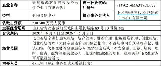 聚源芯星的普通合伙人为中芯聚源股权投资管理(上海)有限公司(下称“中芯聚源”),中芯国际间接持有中芯聚源19.51%的份额。