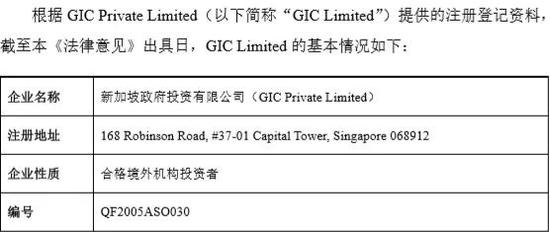 GIC Limited 系新加坡政府投资公司的全资子公司。新加坡政府投资公司成立于1981年5月,是新加坡最大的国际投资机构,其主要任务是管理新加坡的外汇储备,跨出新加坡国界向海外大举投资,目前管理的资产超过千亿美元,属于大型企业。