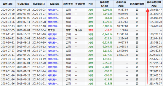 不过,Wind数据显示,第一大股东海航资本集团有限公司自2019年1月起至2020年6月近一年半的时间里,累计对渤海租赁进行了18次减持,期间的持股数量累计下降了约3.5亿股,持股比例也累计下降了近6%。如果按照减持交易均价3.5元/股来粗略计算,累计减持金额约为12亿元。