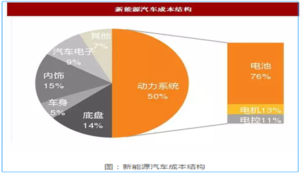 2017年公开信息曾显示,从新能源汽车的成本构成来看,动力系统合计占比约50%,其中电池占到38%,电控和电机占比约12%。业内有种说法,新能源汽车“得动力电池者得整车”。这或说明,在新能源汽车领域,动力电池是关键要素。
