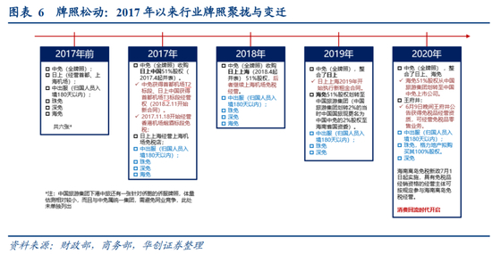 2018-2019:日上、海免逐步被整合,政策稳步放开。政策预期在二阶导上放缓,切入内生增长逻辑。