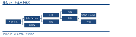 中免免税业务模式为中免本部统一向供应商采购免税品,加一定价格批发给下属免税店,下属免税店向出入境和离岛旅客销售免税品。免税分为批发、传统渠道的免税零售、海棠湾免税店零售。