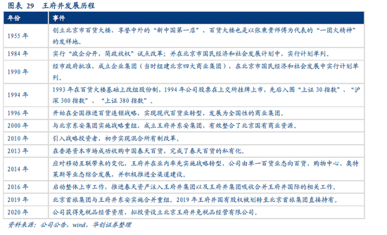 前身为1955年创立的北京市百货大楼,1993年进行股份制改造,1994年在上交所挂牌上市,2000年与北京东安集团战略重组成立王府井东安集团, 2019年王府井国有股权被划转至北京首旅集团直接持有,实控人为北京国资委。2020年6月,王府井被授予免税品经营资质,同年7月公司公告拟投资设立全资子公司北京王府井免税品经营有限公司,用于开展免税品经营业务。