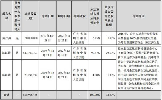 陈江涛个人持股100%被司法冻结