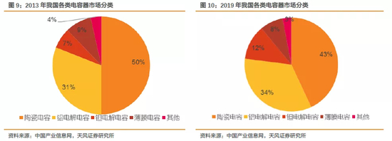 资料显示,钽电容为四大核心电容产品(MLCC/铝电解/钽电容/薄膜电容)之一,结构上最主要的特点是使用金属钽做介质,钽电容拥有高能量密度、高可靠性、稳定的电性能、较宽的工作温度范围等特点,尤其是具有“自愈性”,使其在民用(工业)、军用市场备受青睐。根据中国产业信息网数据,从2013年到2019年,我国电容器市场中,钽电容市场份额从7%上升至12%