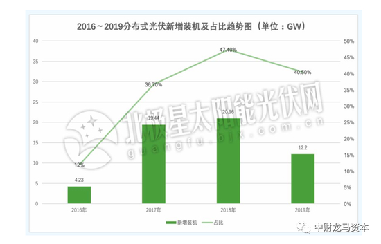 2019年2月28日,国家能源局正式公布2019年光伏发电并网运行情况。根据公告,2019年光伏新增装机30.11GW,其中分布式光伏新增装机12.2GW,占比40.5%,相较去年同期,装机及占比双双下滑。而这也是近三年分布式光伏首次下滑。