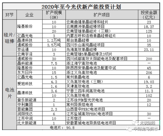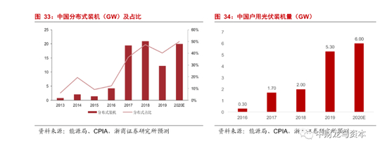 3、2020年国家对地面电站和分布式电站补贴电价都有所下滑,且相较于2019年的30亿总补贴金额,2020年的光伏项目在补贴总额上只有15亿,延迟并网导致补贴退坡的相对敏感程度更大。今年光伏补贴政策出台较早,投资主体准备时间更为充分,且今年48.5GW的新增消纳空间的前置条件已落实。基于上述情况,2020年国内光伏行业将迎来抢装潮,我国光伏新增装机量预计将和去年持平。