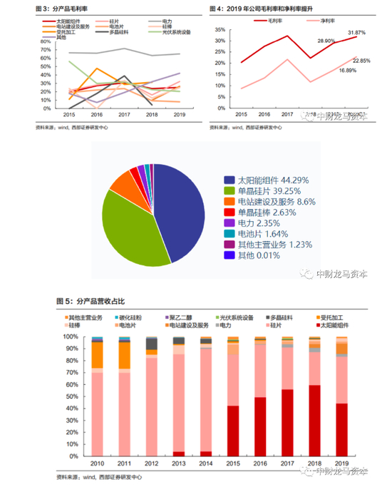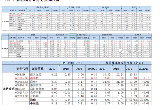 公司光伏玻璃业务2019年收入37.48亿元,同比+78.8%,光伏玻璃销量1.575亿平,同比+67.0%,光伏玻璃价格23.79元/平,同比+7.1%,毛利率32.87%,同比+5.18pct。2019年光伏玻璃量利齐升:1)19年玻璃供需偏紧,玻璃环节涨价;2)公司产品结构上高毛利率的薄玻璃占比升高;3)公司19年Q2新投产安徽凤阳第三条产线,同时18年Q3投产的凤阳第二条产线爬坡完成,产能提升。