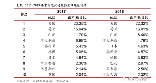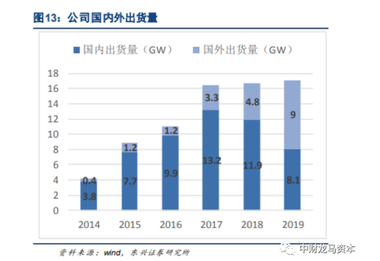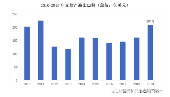 2、中国自2009年开始启动光伏示范项目,由此揭开了国内光伏产业发展的大幕,而此时海外发达国家对光伏补贴政策优厚,叠加中国较低的生产成本优势,从而使国内光伏企业的产品大量出口。但是随着2012年以德国为首的主要发达国家光伏补贴退坡,海外光伏新增装机量开始下降,同时由于自2012年起美国、欧洲针对中国光伏产品启动“双反”,中国大量光伏企业出口骤降,很多企业面临生存危机。中国政府自2012年起加大了对光伏产业的扶持力度,补贴金额在2012-2017五年间维持高位,这一政策促使国内光伏企业把目光转向国内,光伏产业在这一时期得到迅猛发展。2018年由于国内度电补贴首次出现下降,造成当年中国新增光伏装机量首次出现下滑,光伏行业在国内的发展短暂步入低谷。欧盟自2018年9月起结束了对中国光伏产品的“双反”,且国内光伏出口产品的毛利率远高于同等内销产品,于是国内光伏企业开始提高出口占比。2019年虽然中国光伏新增装机量再次出现下滑,但是海外光伏市场在各国实现清洁能源政策的目标推动下增长迅速,中国光伏企业纷纷加大了产品出口比例,因此中国光伏企业在2019年普遍取得了较好业绩。