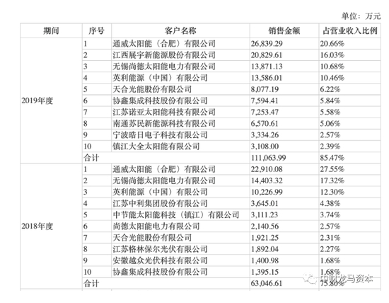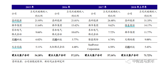 经过近几年发展,公司已建立了稳定的销售渠道,与一大批全球知名光伏组件厂商建立了长期合作关系,如隆基股份、晶科能源、韩华集团、东方日升、Sunpower等等。除光伏玻璃客户外,公司与家居玻璃客户亦建立并维持长期业务关系,2005年起,公司通过了大型跨国家居零售商瑞典宜家的审核,成为宜家全球供应链中合格稳定的供应商。前五名客户销售额217,708.76万元,占年度销售总额45.29%。