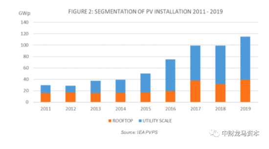 国际能源署(IEA)发布的2020年全球光伏市场报告显示,与2018年相比,全球分布式光伏市场2019年的绝对数量略有增长。不过,与集中光伏电站相比,这一比例相对下降。2019年,由于许多国家招标计划的大力推动,大型地面电站的绝对数量有所增长。