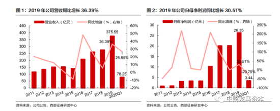 公司发布2019年年报,报告期内实现营业收入48.07亿元,同比增长56.89%;实现利润总额8.63亿元,同比增长85.06%;实现归属母公司净利润7.17亿元,同比增长76.09%,对应EPS为0.37元。2019年毛利率为31.56%,同比上升4.44pct。