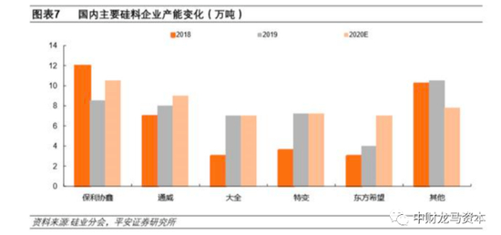 6、随着各国光伏产业补贴的退坡,全球市场对于高效单晶硅产品需求增加,特别是分布式光伏对单晶硅产品的需求更大。单晶硅龙头企业隆基股份继续扩充产能,保利协鑫等多晶硅企业也开始在云南布局单晶硅产能。单晶硅出货量自2018年下半年以来增速已经超过多晶硅,特别是海外需求持续高涨,可以关注二级市场技术含量较高,降本增效明显的单晶硅生产企业。由于硅基材料公司资金投入大且回报期长,行业竞争格局已经形成,因此一级市场机会不大。