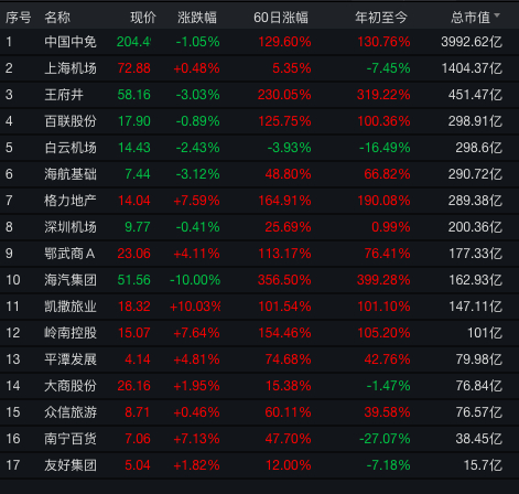 截至8月13日收盘,免税店指数上涨1.48%,其中凯撒旅游涨停,岭南控股、南宁百货、鄂武商、格力地产均涨超5%,平潭发展、大商股份等跟涨。