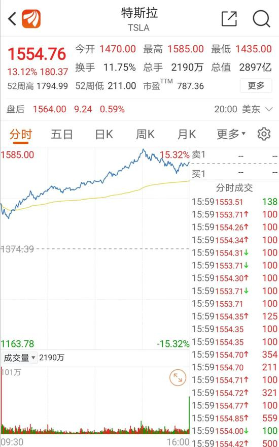 特斯拉股价