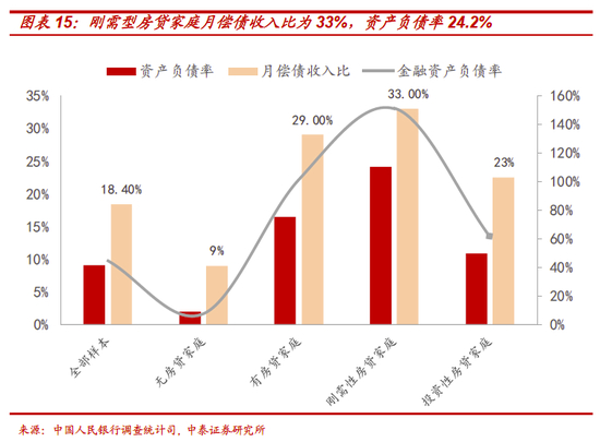 直观上看,房地产确实是造成过去四十年财富分化最主要的因素,高企的房价及其产生的房贷支出,亦是对居民消费能力最大的挤占。根据2019年中国人民银行调查统计司城镇居民家庭资产负债调查课题组最新的报告显示,2019年我国城镇居民的负债参与率是56.5%,房贷占了家庭总负债的占家庭总负债的75.9%;且刚需型房贷家庭月偿债收入比为33%,资产负债率24.2%,均高于投资型房贷家庭(即拥有二套或以上房家庭户)。