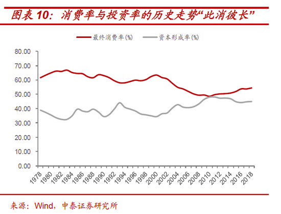 然而,理论与现实往往是存在差异的,自08年金融危机以来,扩大内需一直是各类经济政策中出现最高频的词汇。从历史数据来看,尽管内需对我国经济增长的贡献比一直在提升,但我国消费率的提升并不能够说明消费内生动力的增强,而更多的可能是投资的增速快速下滑导致的“被动式”提升。相对于历史相同阶段的发达国家,我国修正后的消费率仍较国际水平偏低,内需依然相对薄弱。