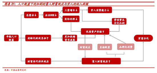 更重要的是,居民财富分化的本质在于存量经济下,经济增长放缓下,劳动者工资收入增速放缓;此前,高增长时期积累的“财富效应”,特别是“富裕世代”的财富传承效应,将越来越明显;经济和企业盈利的内生下行,必然要求货币和资本市场等政策进一步放松,这又将进一步加大资产价格与实体经济之间的分化。这一过程中,分配和调控政策只能改变财富分化的斜率而很难改变方向。