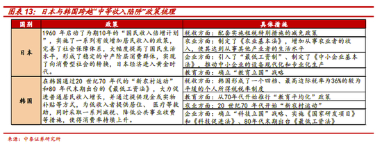 在如此多政策和社会共识加持下,消费率为代表的内需却始终不尽如意,这背后的原因是什么呢?从经济学上看,由于中低收入阶层的边际消费倾向要远远大于富裕阶层,提升消费率的关键在于改善中低阶层人群收入,降低中低收入阶层负担,扩大中产阶层,即进行社会收入分配改革。(给与优惠政策刺激中产阶层的消费需求,比如免税,奢侈品消费等)从日韩经验角度看,日本投资率由消费率由降到升的拐点分别发生在20世纪70年代与90年代,这背后的原因在于,日本经历了十年的“国民收入倍增计划”,韩国经过《最低工资法》等,大力促进普通居民收入增长,并通过为低收入者提供居住、 医疗等救助,以及一系列减税、降低公共事业收费等措施,使得这一时期,认为自己属于“中间阶层”的人群占比超过70%,进而推动消费率持续走强。