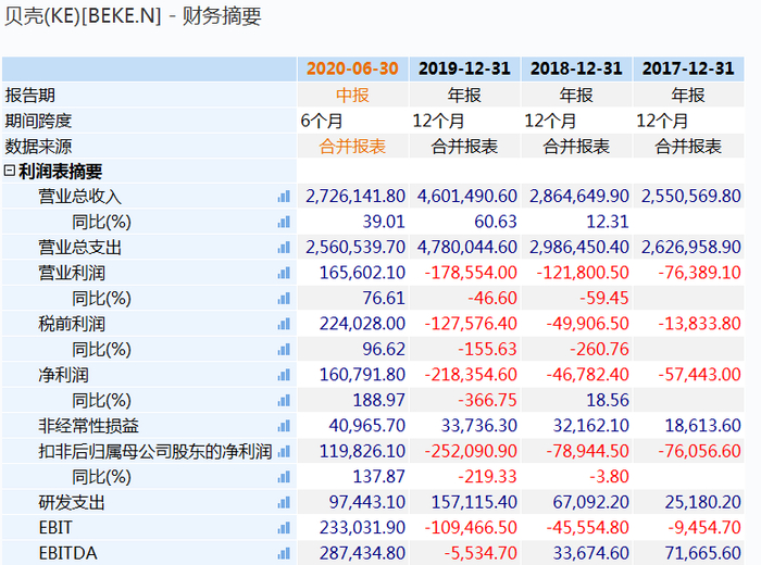 2020年上半年,贝壳更是由于新冠疫情造成的住房交易需求下降,导致营收增速放缓,272.6亿元的营业收入,相比上年同期的196.1亿元增长39%。