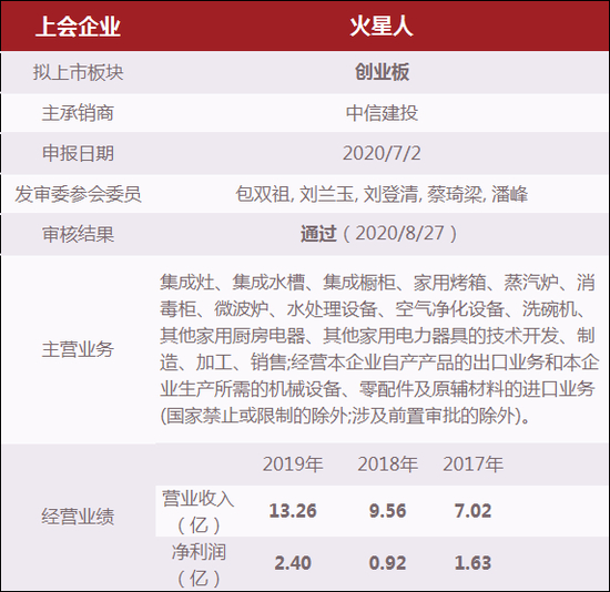 早在2017年6月30日,火星人厨具在证监会官网披露招股书,拟登陆深交所创业板,还被抽中2017年的首发企业信息披露质量抽查。然而,2018年3月5日,其出现在首发申请终止审查企业名单中。2019年下半年再启IPO,然而,火星人在更新招股书后主动撤回了申请,至于前次撤回申请的原因,创业板发审委也予以询问,火星人在回复函中表示,前次 IPO 申报时,公司体量较小,报告期2014 年-2016年营业收入分别为15421.72万元、18794.46万元和34732.99万元,扣非净利润分别为321.37万元、1203.62万元和5185.08万元,前两年净利润不足2000万元,最后一年净利润仅为5000万元左右,前次申请报告期内收入、净利润规模均较小。