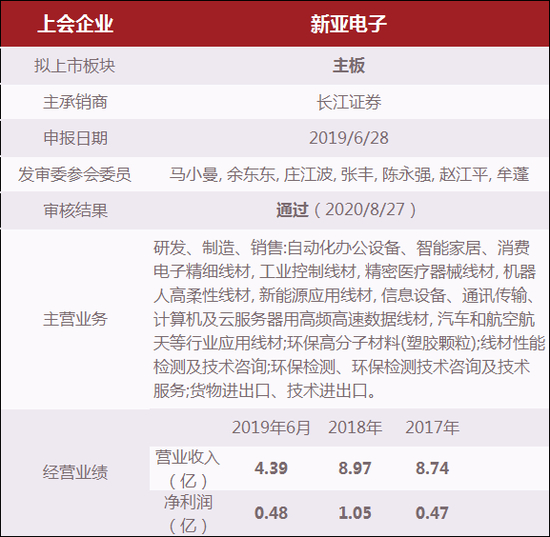 新亚电子主营业务为精细电子线材的研发、制造和销售。其生产的产品主要包括消费电子及工业控制线材、汽车电子线材、高频数据线材及特种线材等,已经广泛应用于家用电器、计算机、智能化办公、工业控制设备、汽车电子、数据服务器及新能源科技等领域。
