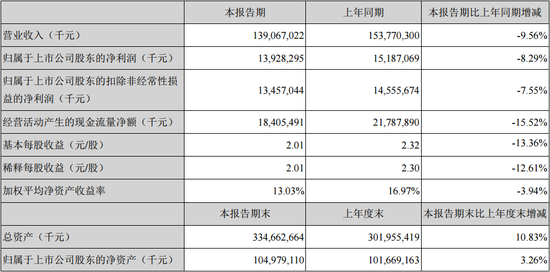 业绩显示,美的集团上半年营收1390.67亿元,同比下降9.56%;净利润139.28亿元,同比下降8.29%;基本每股收益为2.01元。