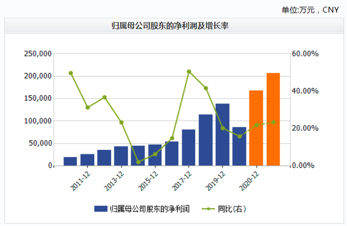 且今年以来,在产品的稀缺属性和收藏价值的加持下,受疫情影响较小。公司最新半年报显示,2020年上半年公司实现总营收32.46亿元,同比增加12.15%,归属于上市公司股东的净利润约8.61亿元,同比增加15.32%。