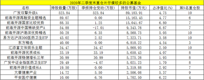 公募基金方面,截至今年二季度末,共有65只基金重仓持有片仔癀,合计持股1199.69万股,这些基金重仓持股市值达20.42亿元左右。其中,广发基金和前海开源基金两家公募重仓持股最多,分别达560.11万股和394.49万股,尤其是广发双擎升级A,对比一季报数据,二季度大举买入523.84万股,可见对其价值的认可。