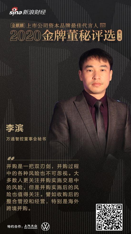 新浪财经主办的2020(第六届)金牌董秘网络票选于8月13日正式启动。本次金牌董秘网络票选时间为8月13日-9月8日。评选期间,新浪财经推出“对话董秘”专访活动,近距离接触董秘圈,深度展现一幕幕与董秘相关的故事。本期,新浪财经带您走近万通智控董秘李滨先生。(给他投票)