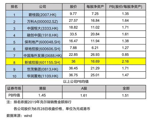 按照A股1.61倍的PB均值,新城控股的价格为26.87元,即从当前价格下跌约25%;按照地产十强公司1.51倍的PB值,新城控股的价格为25.2元,即从当前价格下跌约30%。