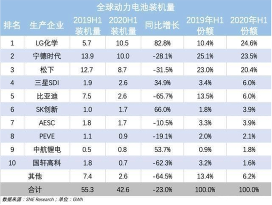 在上半年疫情影响下,国内车企纷纷哑火,而特斯拉在国内爆红,欧洲新能源汽车销量也大幅提升,导致为这些车企提供电池的LG和松下等日韩动力电池企业今年装机量大幅提升。