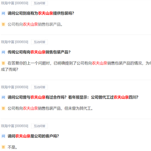 农夫山泉是客户?珠海中富互动易前后矛盾