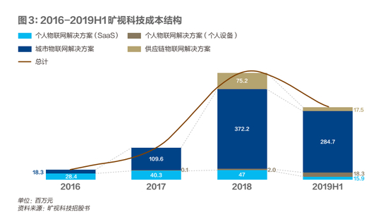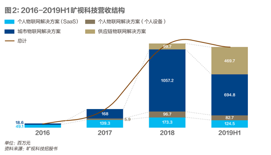招股书显示,目前以安防业务为主的城市物联网解决方案仍然占旷视的收入大头,2019年上半年,这部分业务的收入6.9亿元,占比73.2%。