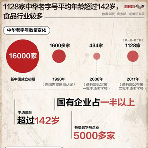 到1990年由原商业部评定的中华老字号只剩下1600家,这个数量仅为新中国成立初期的10%。在2006年商务部《关于实施“振兴老字号工程”的通知》及2011年《关于进一步做好中华老字号保护与促进工作的通知》中,先后确定了两批中华老字号名录,企业总计1128家。