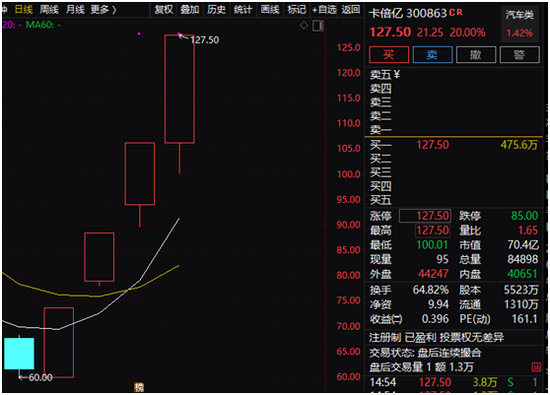 行情数据显示,9月16日,卡倍亿再次上涨20%,连续第四个交易日封住涨停,至此,在短短4个交易日的时间里,公司股价上涨107.38%,实现翻倍。如果从最低价算起,卡倍亿短短4天的涨幅已达到112.50%。