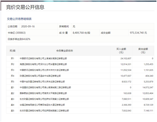 9月16日的龙虎榜也显示,卡倍亿当天买卖双方上榜席位也全部都为营业部席位,其中东方财富拉萨团结路第二证券营业部、东方财富拉萨东环路第二证券营业部是连续第二个交易日上榜。