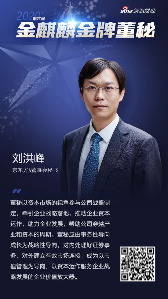 京东方A董秘刘洪峰荣获新浪财经第六届金麒麟·金牌董秘荣誉