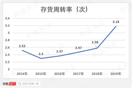 这一点也可以从存货周转率来观察,从2014年的2.52次上升至2019年的3.18次,表现相