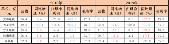 大洋电机和方正电机在2018年录得巨额亏损,随后在2019年勉强回血;