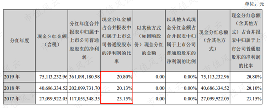此外,根据“吾股大数据”系统显示,公司上市三年累计分红为1.4亿,每年现金分红净额基本占归母净利润的20%附近。