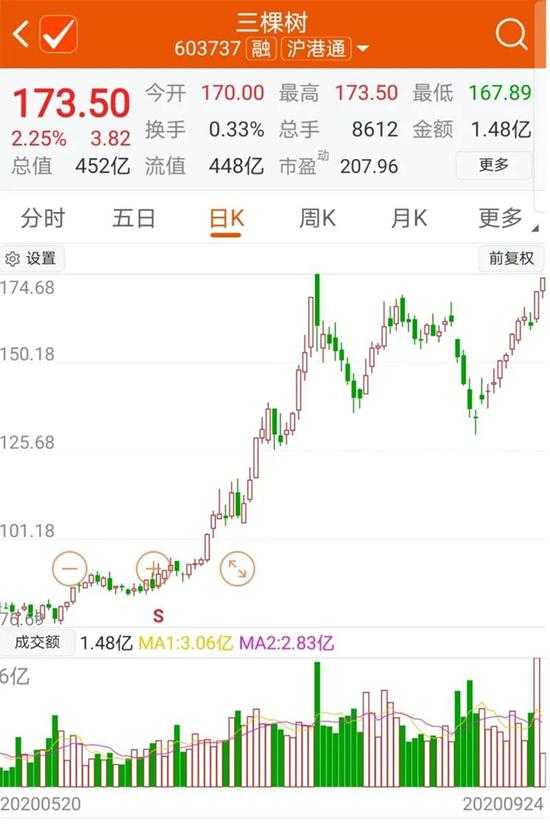 对应到盘面上,三棵树近期股价持续逆势冲高。今日早盘,三棵树继续上涨2.25%,盘中高点距离前期历史新高仅相差不到1%。